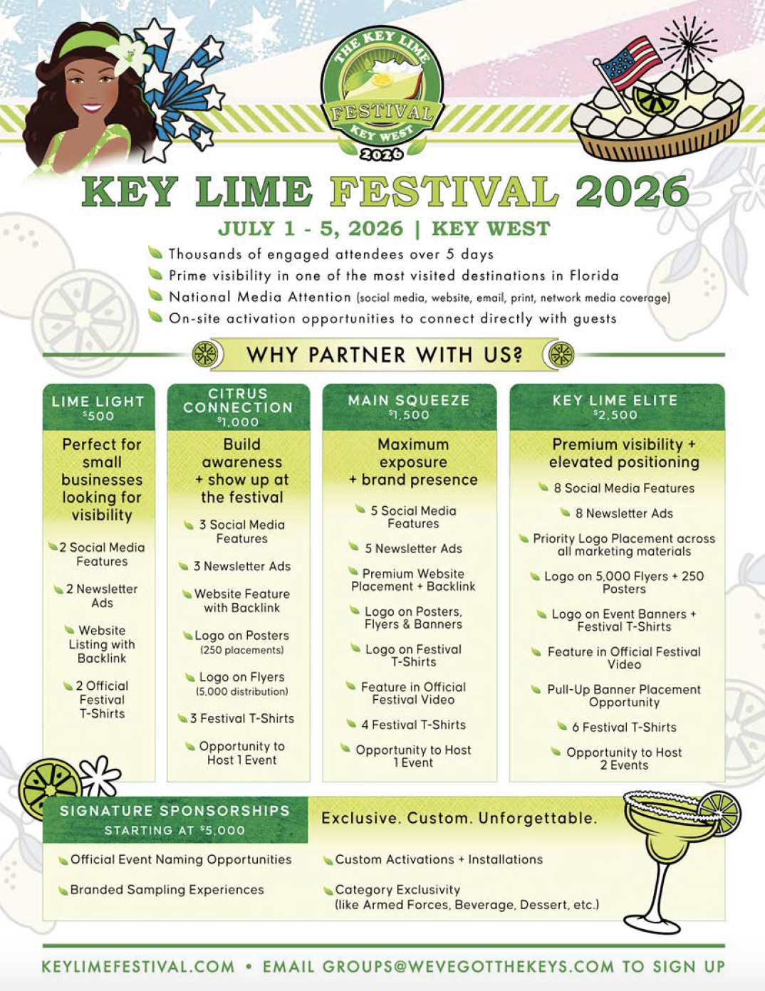This Key West Zany Americana, Family-Friendly Event is one of the most unique and colorful on the island. Showcase your business & join in the fun by becoming a Festival Partner!